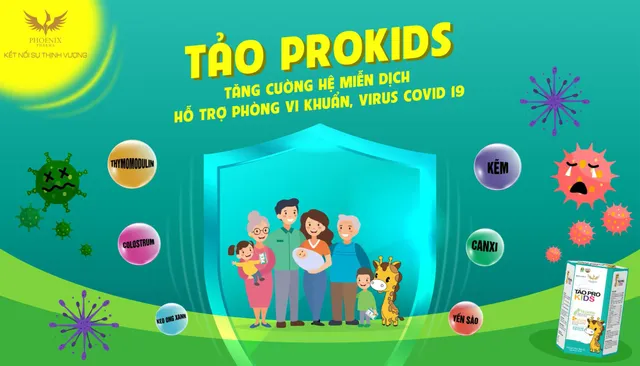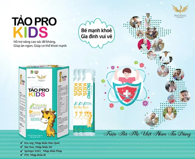 Tảo Pro Kids là một sản phẩm chăm sóc sức khỏe nổi bật của Phoenix Pharma. Có thể kể đến các thành phần như Colostrum, Thymomodulin, Yến sào và kết hợp với Keo ong xanh có trong sản phẩm Tảo Pro Kids giúp tăng sức đề kháng và hệ miễn dịch.